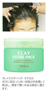 「天然クレイ」 頭皮、毛穴の古い脂分や微細な汚れを吸着し取り除きます。 |